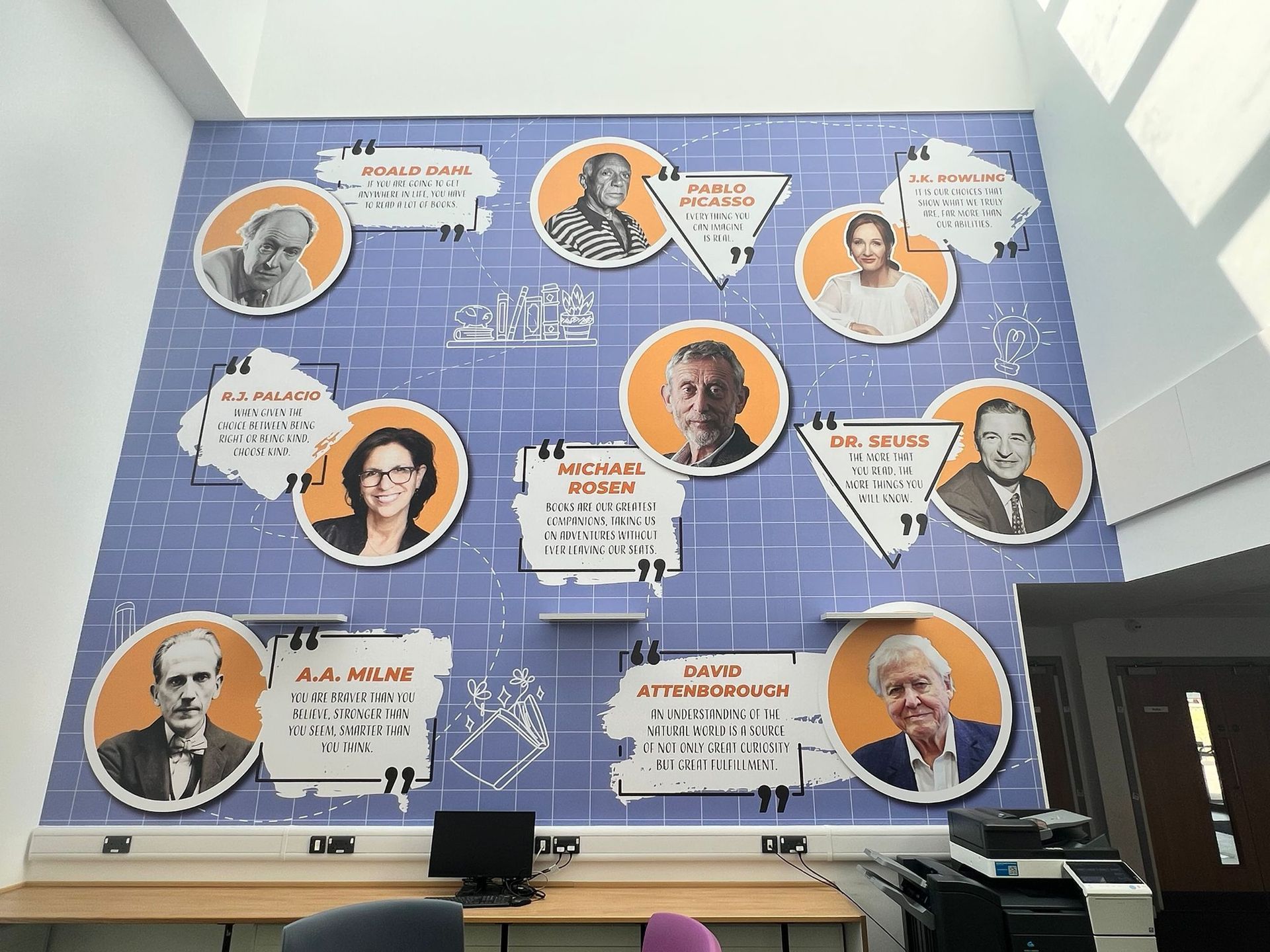 - The wall features portraits of inspirational thinkers, writers, and creatives alongside their most famous quotes to demonstrate the power of imagination and lifelong learning.