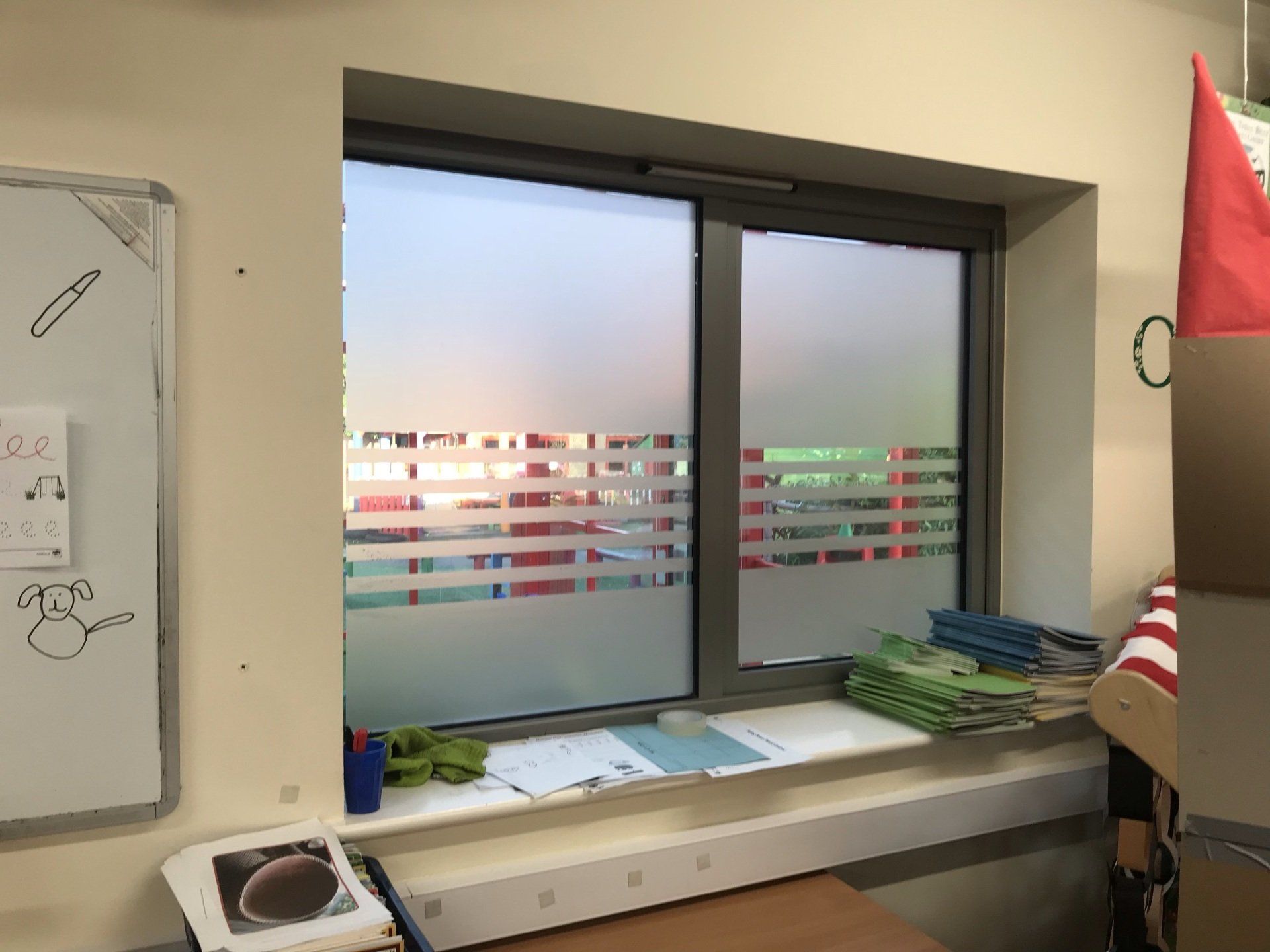 We was tasked with installing frosted vinyl into a schools classrooms which redused sunlight to allow the children to study without being blinded by the sun but still allow the teachers to view outside.