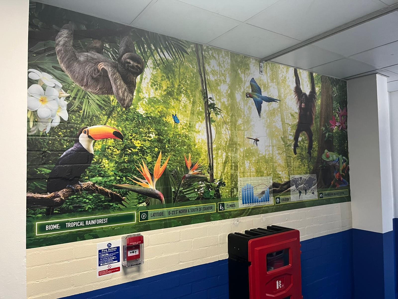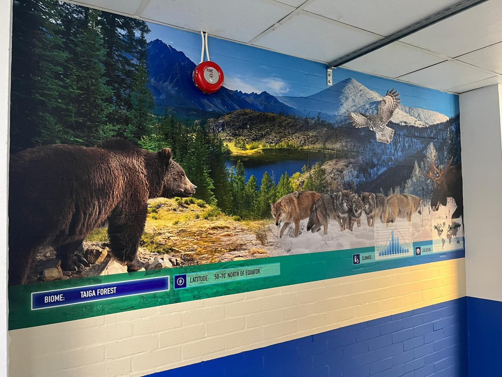 Our experienced designers will work with you to turn your vision of school wall art and ideas for school branding into reality. From first impressions to inspiring murals, our high-quality school murals can even get a smile on your face on a Monday morning. Suppose you are trying to figure out what to do. In that case, we can advise you on the most appropriate theme and design and identify the appropriate school wall and floor-to-ceiling location in your school building to significantly impact students, staff and visitors.