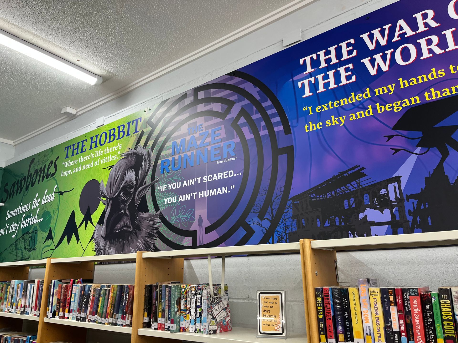 - The school should schedule regular maintenance to preserve the appearance of wall graphics. The school should update book titles each term to align with reading assignments and World Book Day celebrations.