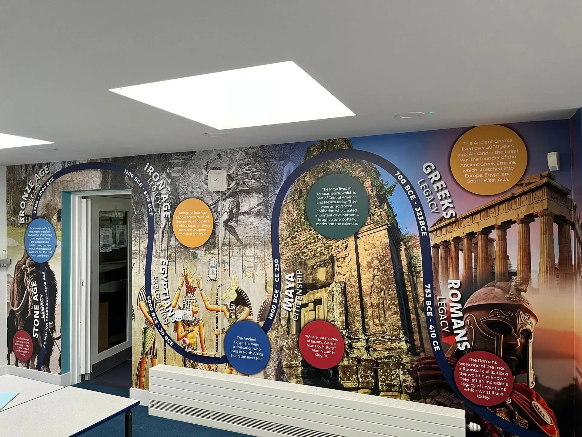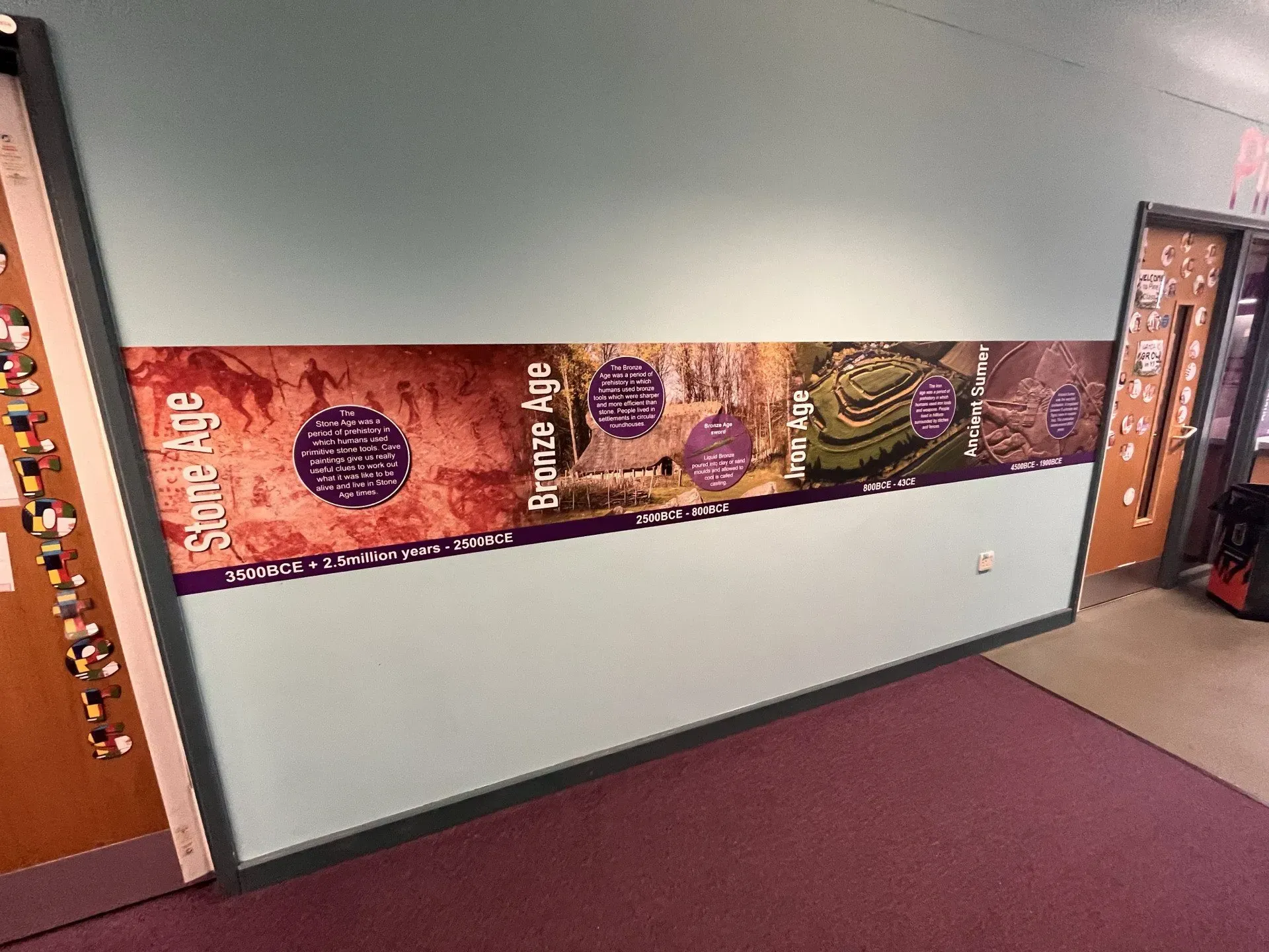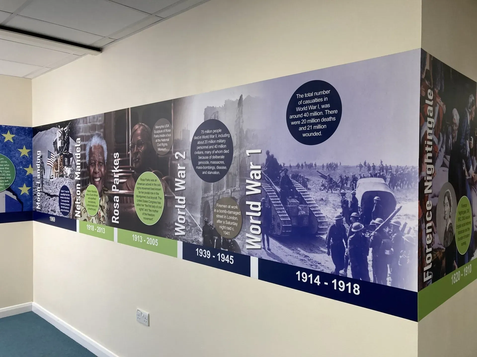 Bring your corridors to life with a history, maths, languages, art Timeline.