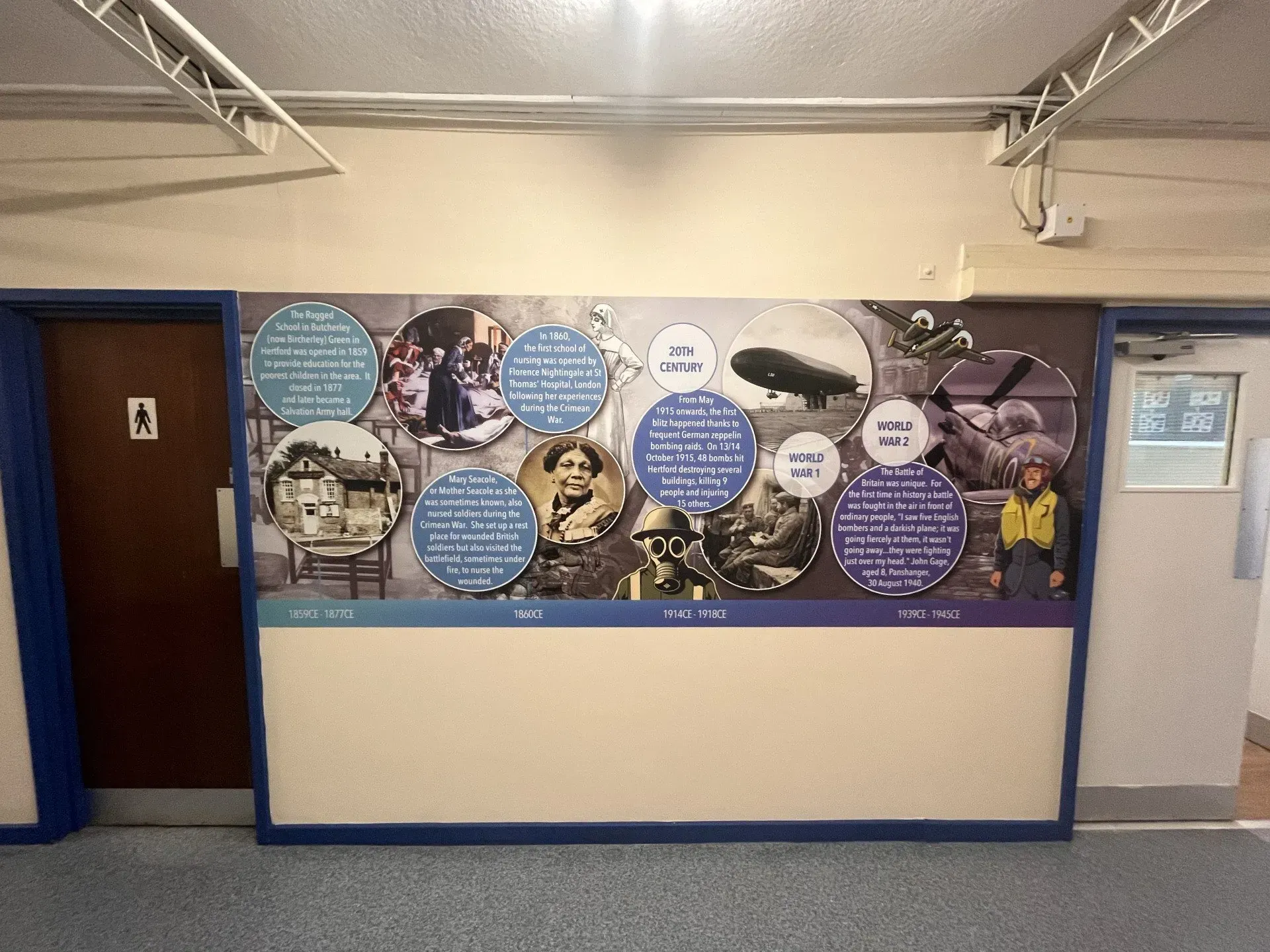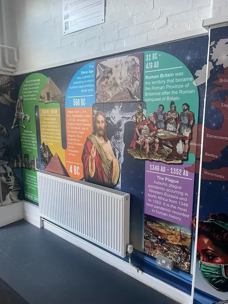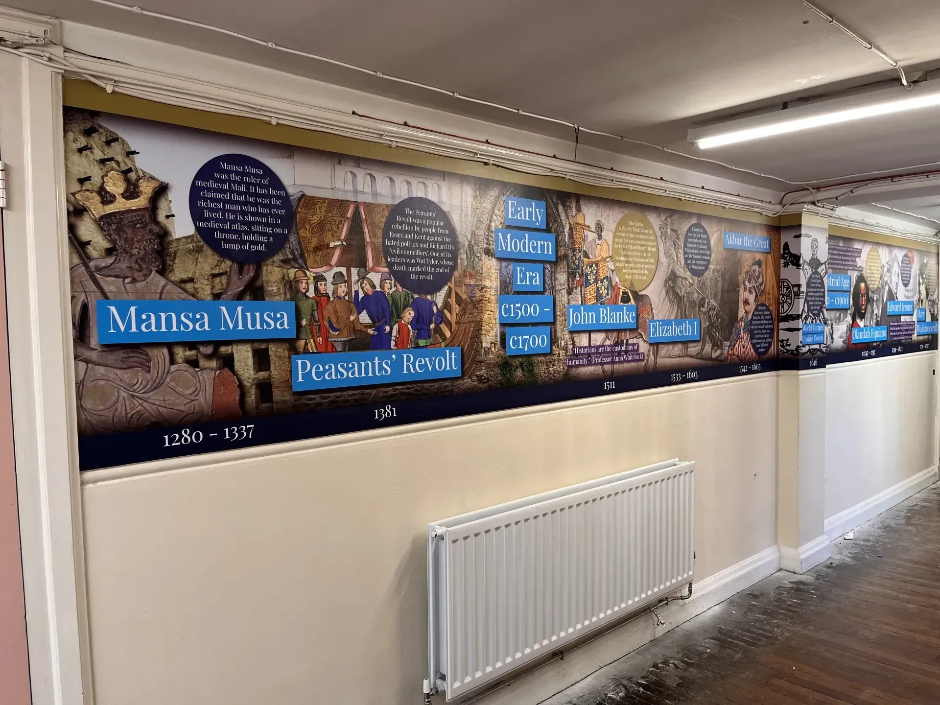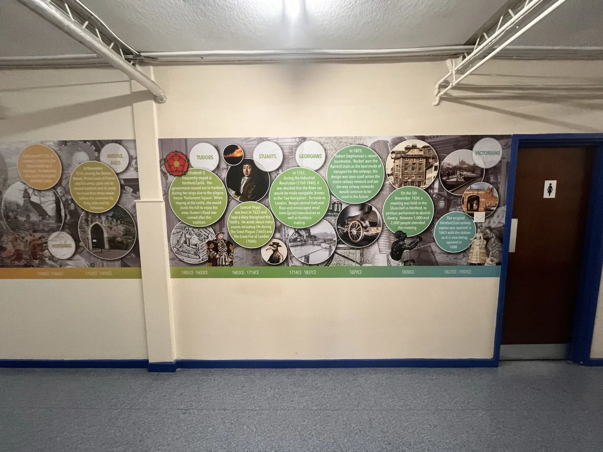 Bring your corridors to life with a history, maths, languages, art Timeline.